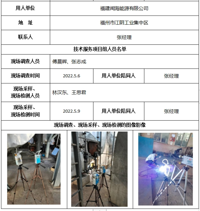 福建閩海能源有限公司2022年工作場所職業(yè)病危害因素檢測